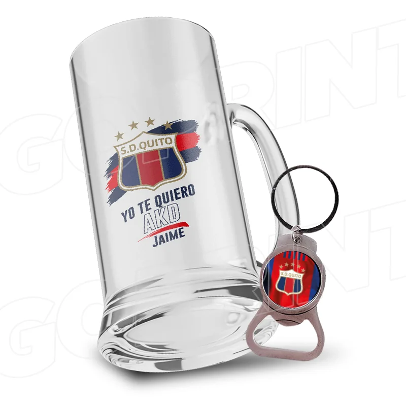 ¡Combo irresistible! Disfruta de tu cerveza favorita en nuestro jarro cervecero Frozen de 500ml con diseño exclusivo de Deportivo Quito. Además, incluimos un llavero destapador metálico con temática del equipo para que nunca te quedes sin abrir una cerveza en los momentos más emocionantes.