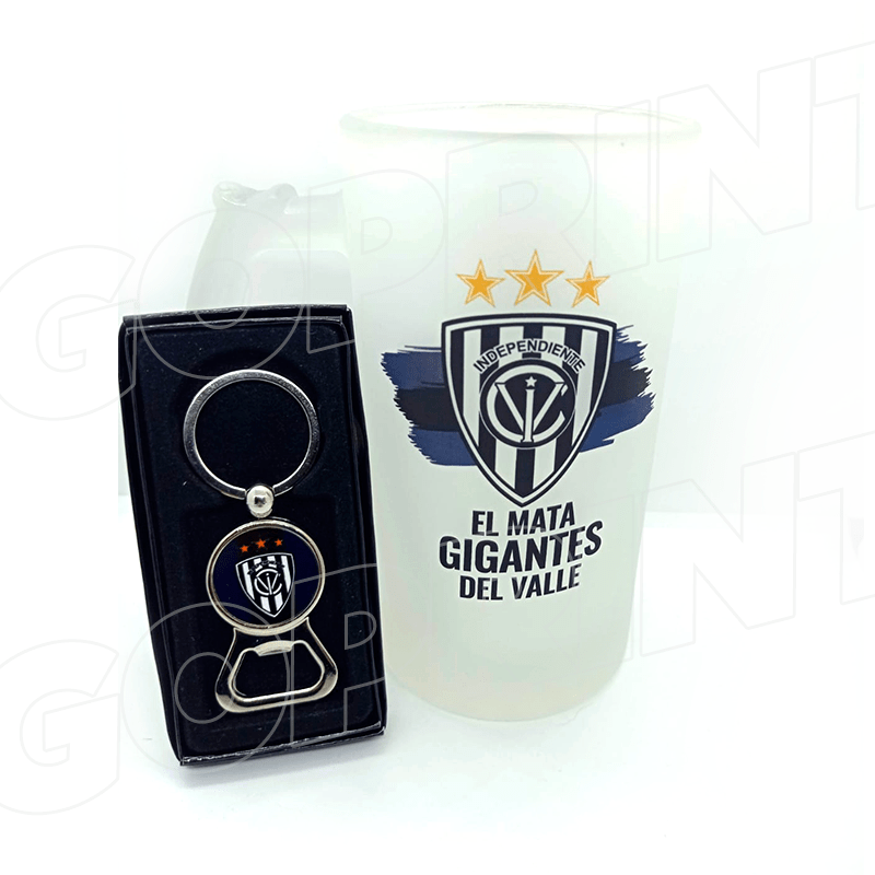 ¡Combo irresistible! Disfruta de tu cerveza favorita en nuestro jarro cervecero Frozen de 500ml con diseño exclusivo de Independiente del Valle. Además, incluimos un llavero destapador metálico con temática del equipo para que nunca te quedes sin abrir una cerveza en los momentos más emocionantes del partido.