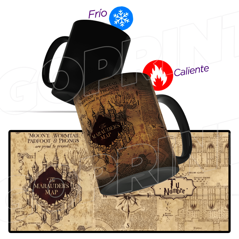 Fascinante taza de 11 oz con el mapa del merodeador, perfecta para los auténticos fanáticos del mundo mágico. Observa con asombro cómo el mapa se revela a medida que viertes líquido caliente en la taza, revelando los secretos ocultos de Hogwarts y los pasadizos secretos de los merodeadores. Además, puedes personalizar esta taza con el nombre de tu elección, convirtiéndola en un regalo único y especial. Y para completar la experiencia, cada taza viene con una caja personalizada con diseño temático de Harry Potter. ¡Hazte con esta taza mágica personalizada y deja que la magia te acompañe en cada sorbo!